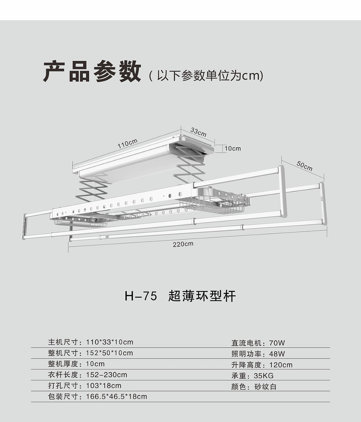 H-75超薄环型杆(砂纹白)